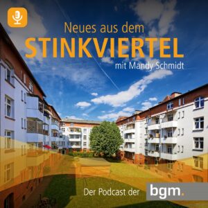Unter dem Titel Neues aus dem Stinkviertel – Der bgm-Podcast nehmen wir in regelmäßigen Abständen Folgen mit unterschiedlichen Themenschwerpunkten auf, in denen die bgm-Vorstände Stefan Binder und Martin Ahrens ebenso wie Expertinnen und Experten aus verschiedenen Fachgebieten zu Wort kommen. Immer mit dabei ist die bekannte Radiomoderatorin Mandy Schmidt, die durch die einzelnen Folgen führt und als Gesprächspartnerin auch mal genauer nachhakt.