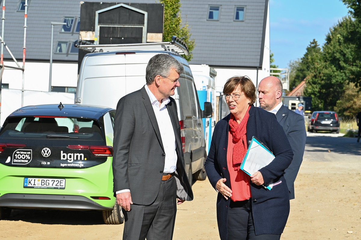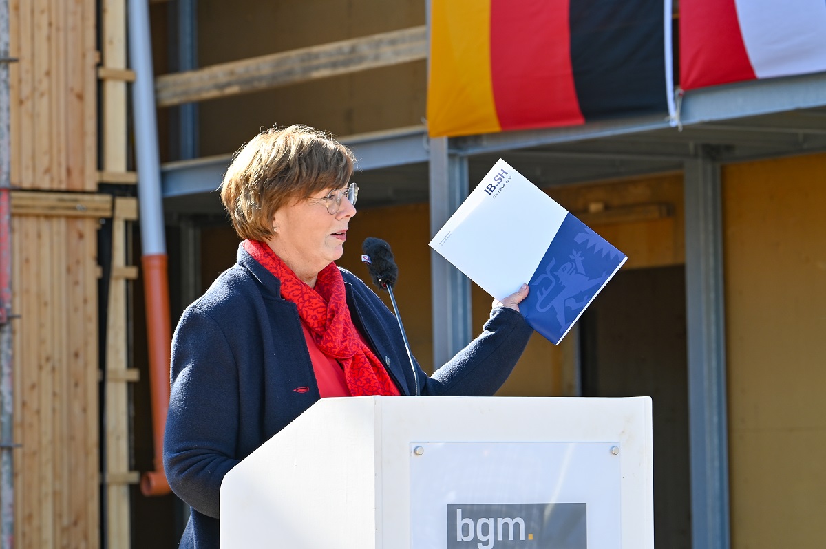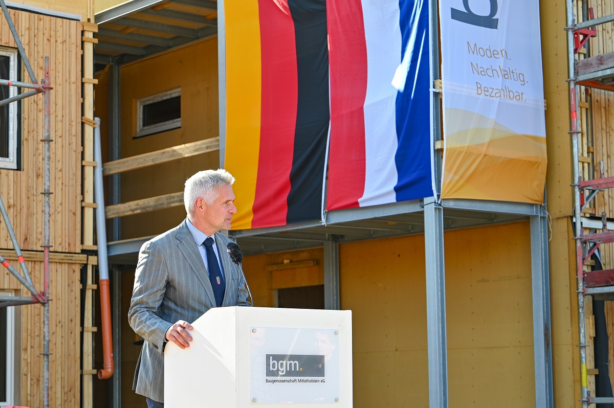 Neben Schleswig-Holsteins Innenministerin Dr. Sabine Sütterlin-Waack, die den Förderbescheid des Landes persönlich an bgm-Vorstand Stefan Binder überreichte, richteten auch Nortorfs Bürgermeister Torben Ackermann sowie Andreas Breitner, Direktor des Verbands norddeutscher Wohnungsunternehmen, persönliche Grußworte an die Festgesellschaft. Zu den Gästen zählten unter anderem auch die SPD-Landesvorsitzende und Fraktionsvorsitzende Serpil Midyatli, die Landtagsabgeordneten Kai Dolgner und Michel Deckmann, Nortorfs Amtsdirektor Dieter Staschewski sowie die stellvertretende Kreispräsidentin des Kreises Rendsburg-Eckernförde, Anke Göttsch.