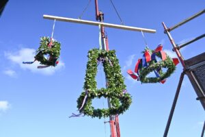 Die Bedeutung des Bauprojekts spiegelte sich auch in den Grußworten wider. „Mut und Fleiß werden belohnt“, befand die Innenministerin. „In Zeiten großer Veränderung im Bausektor zeigt sich hier, dass wir Lösungen finden können, die ökologisch und sozial sind.“ Insbesondere Holz als Baustoff bringe viele Vorteile, wie den Wegfall der energieintensiven Herstellung anderer Baumaterialien oder langer Trocknungszeiten, so die Ministerin weiter. Auch von Bürgermeister Ackermann, der sich selbst als echten Fan der Holzbauweise bezeichnete, gab es viel Lob für das Bauprojekt. „Ich glaube, dass wir hier in Nortorf mit der bgm den stärksten regionalen Partner in Sachen Wohnungsbau an unserer Seite haben“, so der Verwaltungschef, der das Projekt bereits jetzt als preisverdächtigen Kandidaten für Architekturauszeichnungen sieht. Zum Ende des traditionellen Richtspruchs, den Zimmerermeister Manuel Diestelmeier gemeinsam mit seinen Gesellen vom Dach des südlichen Gebäudes verkündete, wurde auf die gute Zukunft des Neubaus angestoßen.
