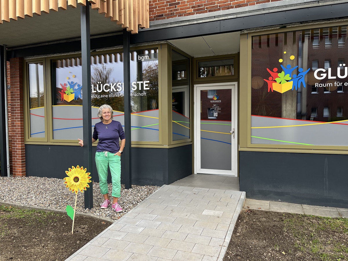 Denn der neue Gemeinschaftsraum ist ein Ort für die Menschen: Bunt und lebendig, ob zum Lesen, Spielen, Klönen oder Kontakteknöpfen. „Ich freue mich sehr auf die Begegnungen mit den Besucherinnen und Besuchern“, sagt bgm-Mitarbeiterin Anja Jeß-Stuhr, die unsere Glückskiste betreut und kompetente Ansprechpartnerin direkt vor Ort ist. Anfang des Monats öffnete die Glückskiste ihre Türen, mittlerweile nutzen die ersten Stammgäste das Angebot für einen unbeschwerten Plausch in entspannter Atmosphäre. Doch die Glückskiste ist auch ein Ort des Mitgestaltens: „Wir freuen uns, wenn unsere Mitglieder eigene Ideen für Angebote entwickeln und sich ehrenamtlich in ihrer Glückskiste engagieren möchten“, so Anja Jeß-Stuhr. So wird es zukünftig in den Räumlichkeiten dank entsprechender Präsentationstechnik auch die Möglichkeit für Vorträge oder ähnliche Angebote geben.